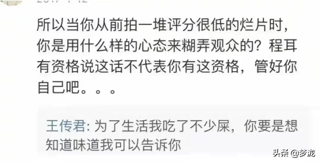 “所以当你从前拍一堆评分很低的烂片时,你是用什么样的心态来糊弄观众的?程耳有资格说这话不代表你有这资格,管好你自己吧。”