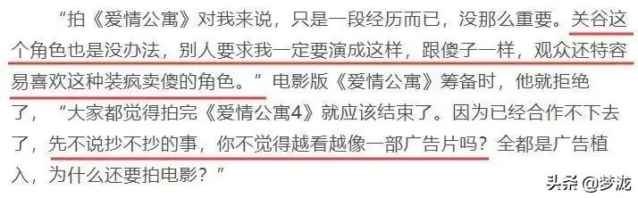 王传君也开始直接diss《爱情公寓》就是一部抄袭片,什么都是从别的作品里搬出来的。