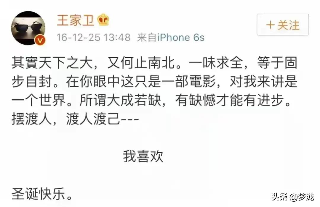 王家卫深知这部电影的口碑不是很好,于是发文: