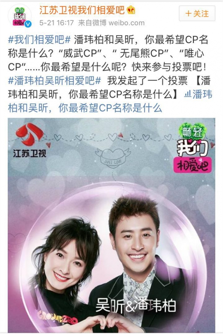 原来他们俩参加了《我们相爱吧》第三季的节目了,在节目里吴昕和潘玮柏可是光明正大地谈恋爱呢,隔空秀恩爱算个啥。