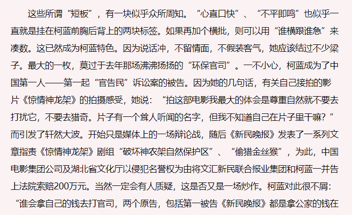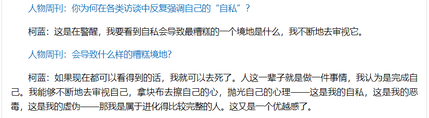 真实的柯蓝,是尖锐的,鲜明的,自我的。