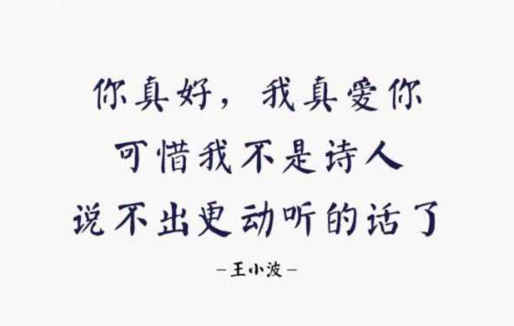 我们对他的书籍了解可能比较少, 但是他那经典的话语却余音绕梁, 不绝回响。我们经常说的情话是亲爱的, 我爱你一生一世不后悔。而在王小波笔下, 爱情是那么的清新脱俗: