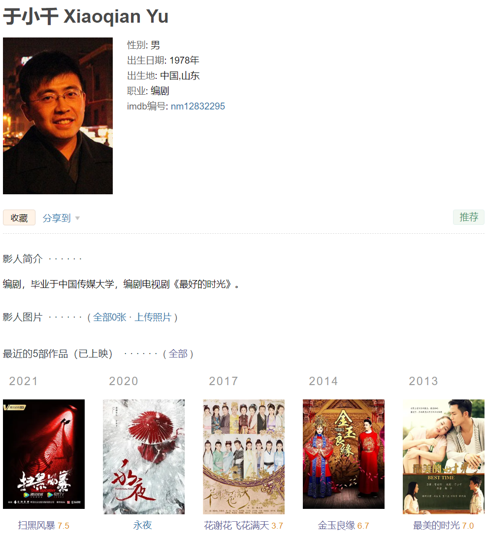 但凡事无绝对,比如编剧大神王倦就因为作品多次受到好评而被观众所熟知,《庆余年》8.0分,《大宋少年志》8.0分,《舞乐传奇》8.8分,《护国军魂传奇》8.0分,《木府风云》8.0分,看看这些好评不断的作品,王倦想不出名都难了。而如今《扫黑风暴》其中的一个编剧也像王倦一样走进了人们的视野,他就是《金玉良缘》和《最美的时光》的编剧于小千。虽然于小千只是参与创作人员其中之一,但有他加入的影视剧无疑都获得了一定关注度,这代表着于小千也是一位实力比较出众的强力编剧。