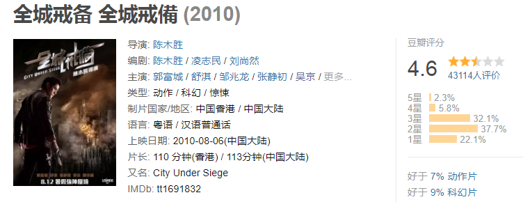 " no4.《全城戒备》 4.6分 2010