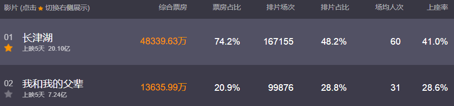 上映第五天(10月4日),《长津湖》票房冲破20亿。