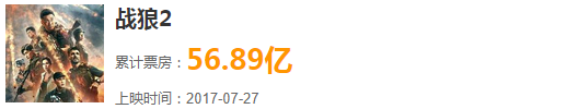 排名第一的《战狼2》,56.89亿。