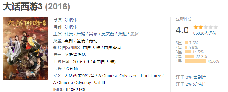 no1.《大话西游3》 4.0分 2016年