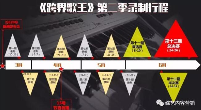 赛制:晋级赛6位明星参演,抽签决定两两pk(对唱);胜者3人比拼,两期节目累计最高分者晋级半决赛;pk失败者3人比拼中最后一名淘汰。