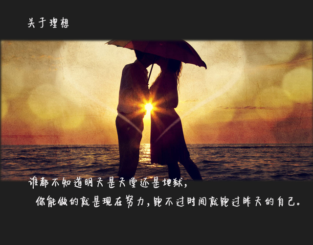 总有些时刻你会不再相信了,可在心底你又会有所追寻,可你又还是豁出去去等待去努力。在每一个追寻的过程中,有太多的不可控,谁都不知道明天是天堂还是地狱,你能做的就是现在努力,跑不过时间就跑过昨天的自己。不惧怕黑夜,是因为心里有光。
