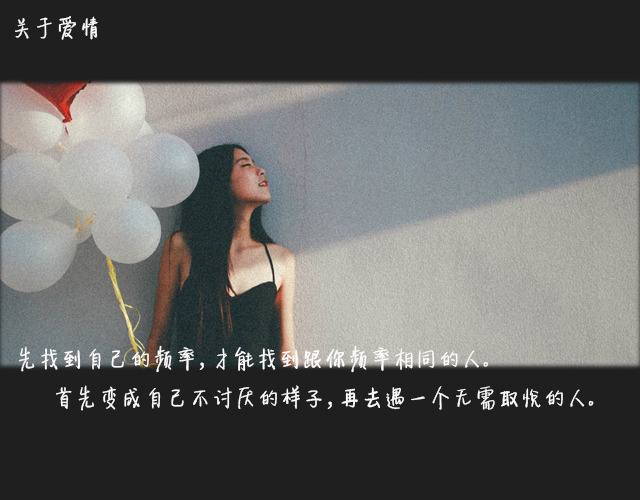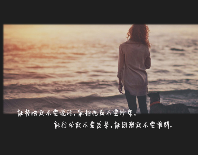 你会渐渐发现,“有话聊”是两个人在一起的基本标准。这世上没有谁有义务去等谁,维系一份关系或者感情从来都是两个人的事。保持必要的关心,保持前行,为了相似的目标共同努力,两个人才能保持在同一个频率里。说话总是要解释半天,或者根本说不到一起去,多烦心,能聊得来真的太重要。一个人细腻,敏感甚至偶尔矫情这完全没有什么不好,谁都有这种时候心里能被感动是好事,只要在工作学习时能保持效率就好。但人切记不要太玻璃心:学会拒绝,不瞎操心;学会坚持,不因为别人一句话难受半天纠结自己;保持自我,不去迎合任何人,更不去指责别人的人生。