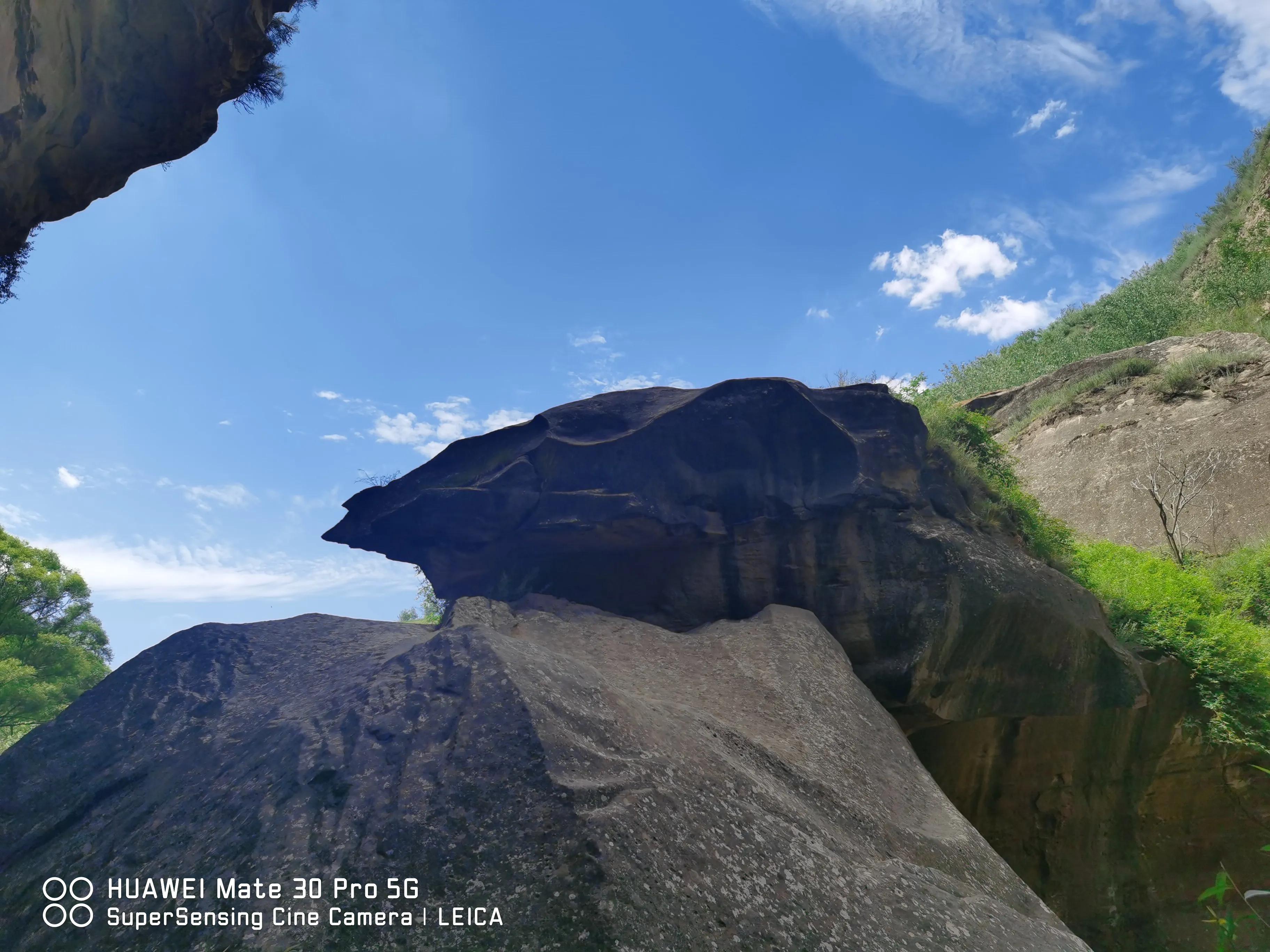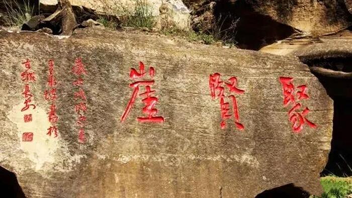 眼瞧脚下无路,众人犹豫是不前,红中说再走5分钟看看。他下至沟底探路,倾刻喊看见啦!我从岸坎滑下,果真峰回路转,一方三人来高、八人平躺之长的巨石横卧河心,截断沟道。其石如刀劈剑斩、浑然天成,上镌“转运石”三个朱红行楷,应是天外来客,雄奇壮观。重耳当年是不是遇此石才改变多舛命运,其无实考。但摸摸这块大自然的神奇造化,期许一些美好愿景,亦不无益,总强于那些只差跬步,与其失之交臂之人。