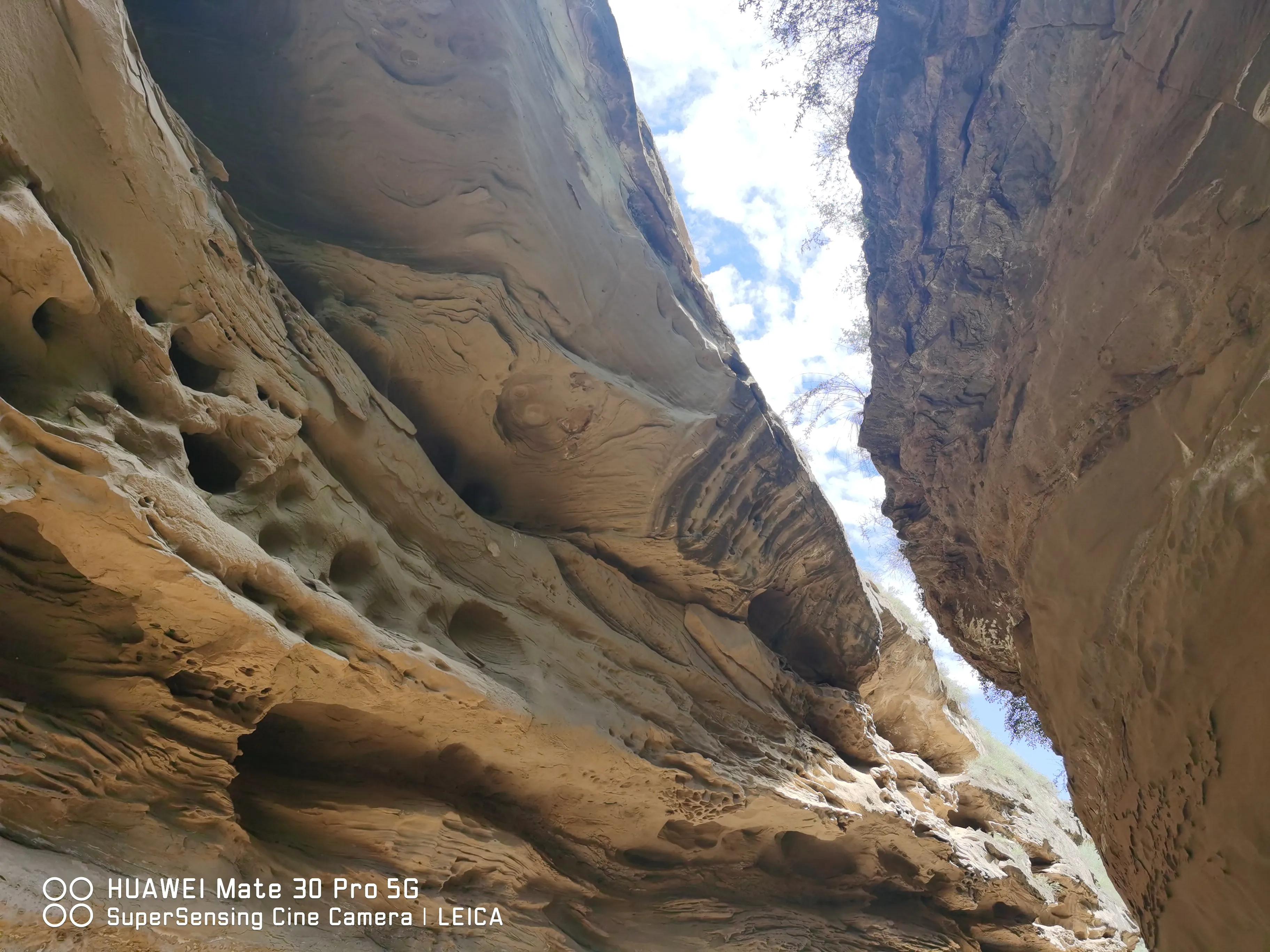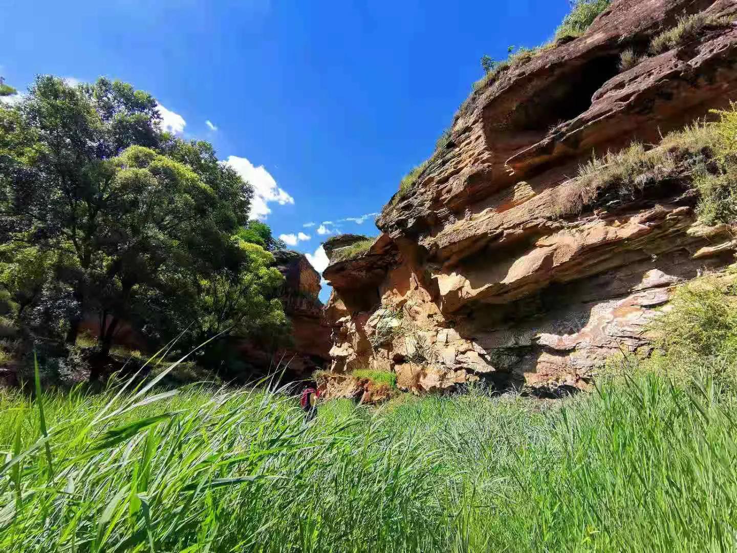 时至午后,高原的紫外线仍有些炙刺。高台中心冯主任招呼团员们尝过当地粗粮细作的各色美食后,引我们来游重耳谷。下至十多米深的谷底,立即就感到一阵阵凉爽。他指着面前的绝壁巉岩、清泉深潭说:这就是长3.2公里的重耳谷,原先这里叫重耳川,我们起了好听的名字“重耳养生谷”,开辟为地质公园。