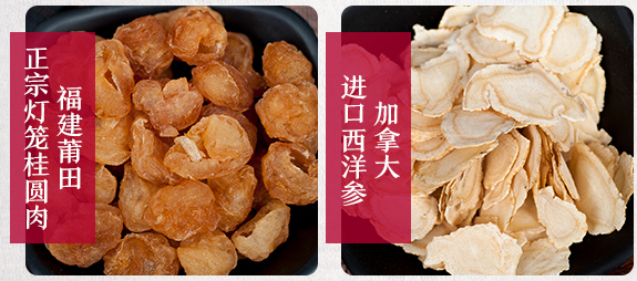 龙眼肉(干)+西洋参(磨成粉比较好吸收),10:1的比例进行配备。