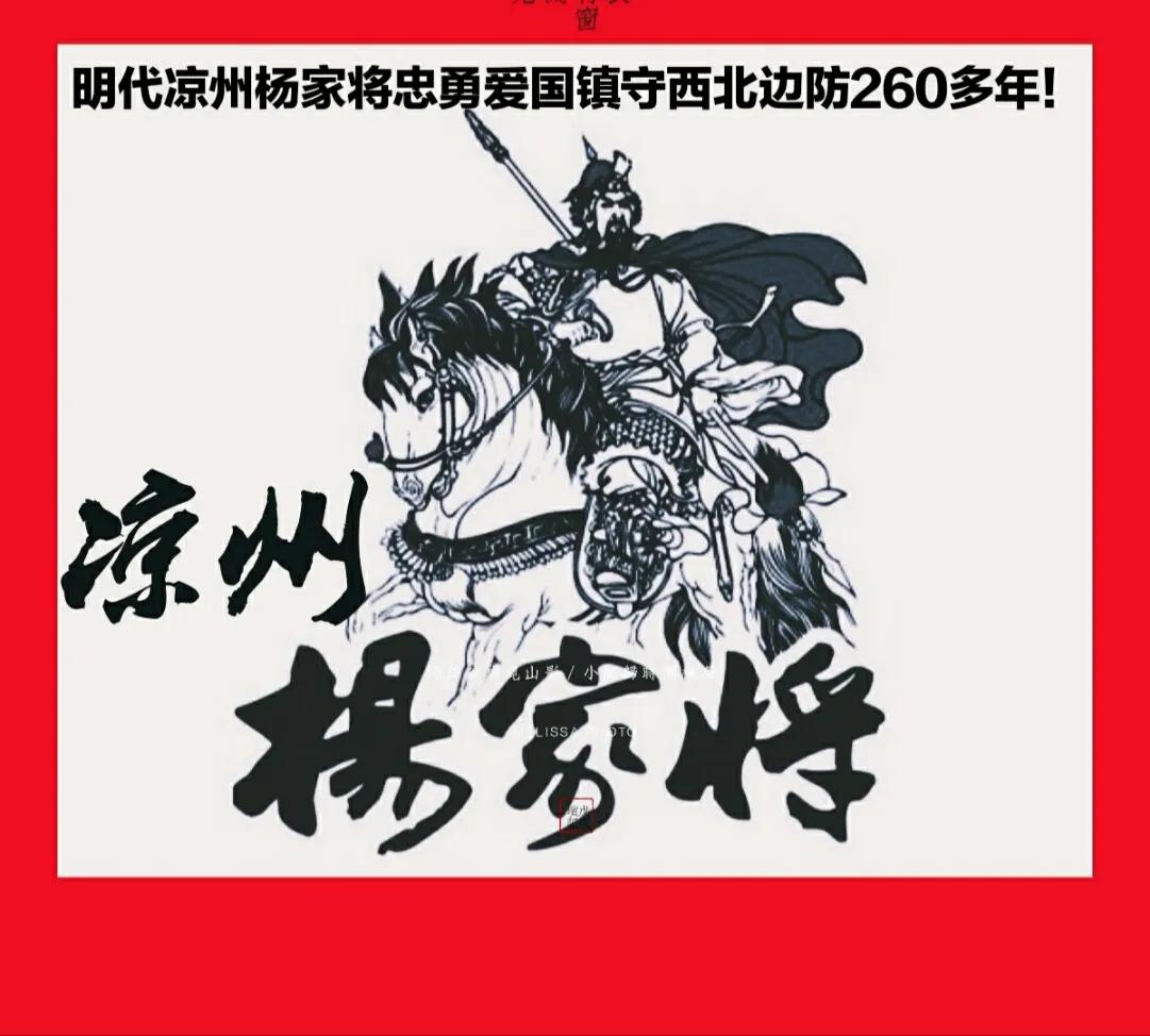 明代杨家将,带眷举家,进驻凉州,一腔碧血洒青史;塞上精锐卒,竭心尽力,戍守边疆,四面黄沙唱挽歌。杨雄和林喋血,杨税靖难阵亡。杨忠出使西域,丝路再通畅;杨斌筹建卫学,文德又敷诞。杨佑受供三官神祠,教化后昆,乡贤拜家庙;杨鳌分守延绥西路,血战有功,勇士仰孤标。英雄杨嘉谟,拔剑向天山海关;将才杨卫国,共坚奇伐大松山。道显死尽节,后代不仕清。武将世家,父子并肩,忠义猛将若星辰,威镇边陲;袭承祖职,子孙相继,驱虏靖边建殊勋,忠魂永垂。横槊祁连山,修饬武备,筑塞固边,战马蹄惊千古荒;扬旌嘉峪关,南捍诸番,北拒蒙古,河西走廊一剑悬。