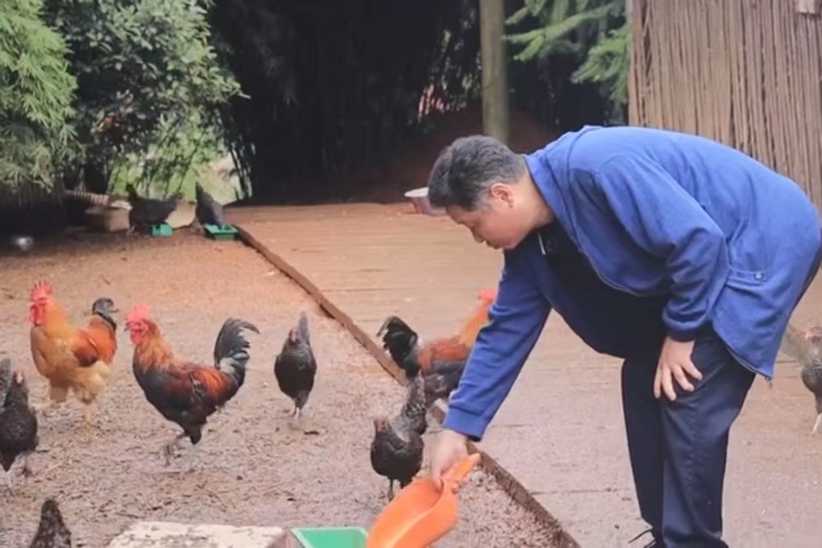当时汶川地震之后没多久,赵亮很低调地在老家养起了鸡。