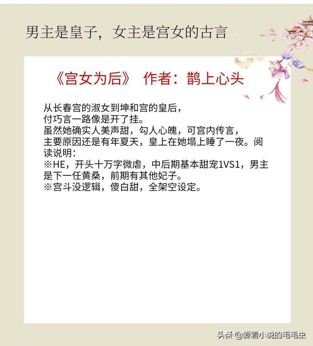 5本男主是皇子,女主是宫女的古言推荐,你最先想到哪一本?