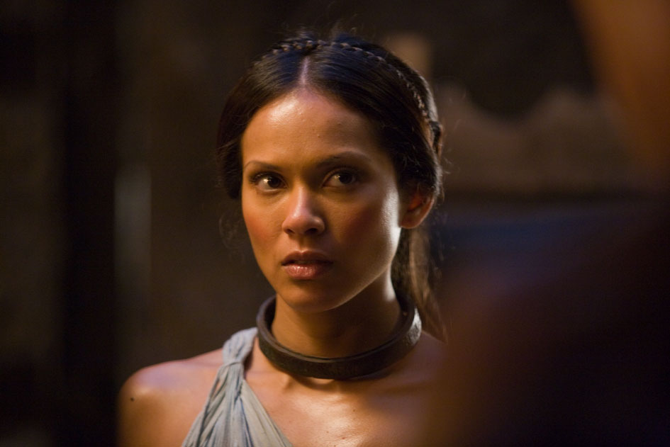 《斯巴达克斯:血与沙》中饰演naevia,继黑人教头夫人梅莉塔死后老板娘的又一任贴身女奴,角斗士克雷斯(crixus)心仪的女人