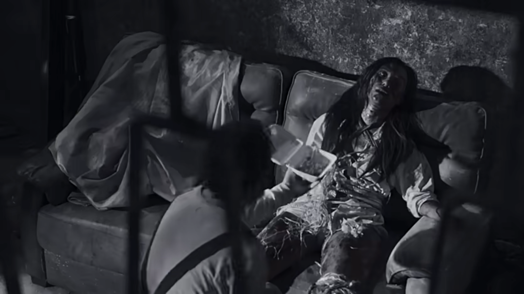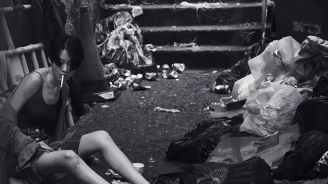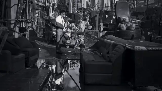 这部电影全程黑白,开场是垃圾堆还有尸体,特写镜头移来移去,不适合吃饭的时候观赏。