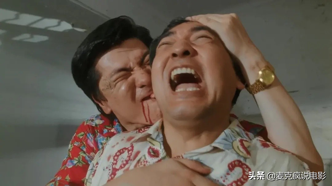 这其中尤为值得一提的就是《雷洛传1》,小编觉得,这也是刘德华和龙方两人最为经典的一次合作。后者在戏里扮演了开设赌档的亡命之徒响尾蛇,一开始将雷洛打了个半死,后来又挟持关海山饰演的退休探长索要负债,中枪后装死还咬了颜同的耳朵,人设是既癫狂又嚣张,因为角色弧度完整,让人看得很过瘾,而他那句“我疯起来,连天王老子都不给面子”的台词,也可以看成是龙方银幕奸人角色的特点总结。