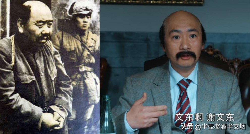 读者诸君请看下图:左边是1946年谢文东被枪决前的照片,右面是《胜算》中受福原邀请劝降唐飞的谢文东剧照,如果不看图片颜色,剧中人和历史中人是不是一模一样?