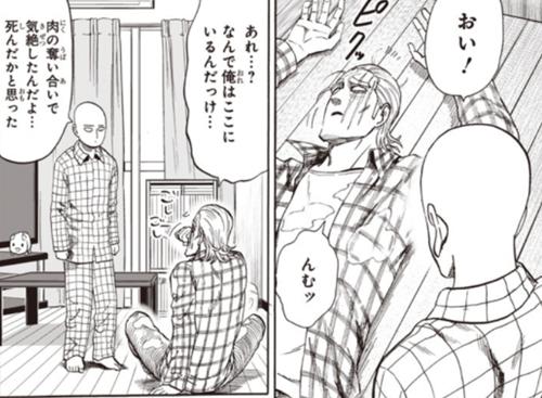 画面转到了吃火锅的king这里,埼玉一直以为king吃个火锅直接领了便当,谁知道是想多了,king是晕过去了,结果晕倒后直接睡着了,一躺就是一个晚上。