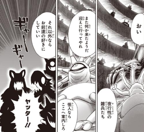 去侦查的也行怪人捡回了一条命,先遣队基本上被饿狼给灭干净了,这里也提到了切割王的特殊爱好,怪人协会自身内部并不和谐,很多怪人也很讨厌怪人协会本身。