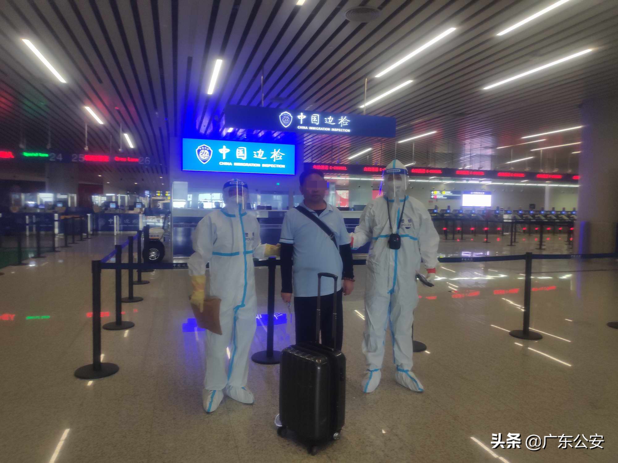 今年4月9日,在公安部、澜湄执法中心的大力协调下,柬埔寨执法部门成功将邓某抓获并羁押。为严防疫情输入风险,肇庆警方与疫情防控部门紧密对接,就接收、检验检疫及隔离羁押犯罪嫌疑人等制订了细致周密的工作方案。7月5日,押解工作组顺利将邓某从柬埔寨金边押解回国,并在入境后将其带到指定隔离点进行医学隔离观察。
