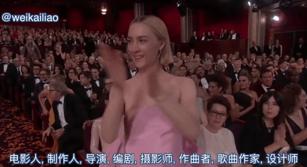 梅姨作为老戏骨第一个起立,包括好莱坞新生代的罗南等女电影人、制片人、导演、编剧、摄影师、作曲人统统起立鼓掌。