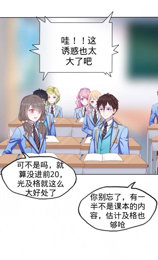 本来50话是写蓝熙月肚子疼发生的事的,然后小稀想到小伙伴们最近也快考试了,都在忙复习,所以小稀就把考试这一项插入50话里,但是肯定不可能的是这半个月都在复习的,复习这一段我会省略掉,直接到考试,还记得三个月前欧阳沐晴跟司徒依然说的悄悄话吗?那时候她们提到的也是考试,只不过那时候她们说的是一个月后小考的考试,但是由于女主三人请假请了三个月,所以小考女主她们肯定是没考的,司徒依然也就没机会动什么歪心思,就是不知道这次会不会有什么事发生。(预告)