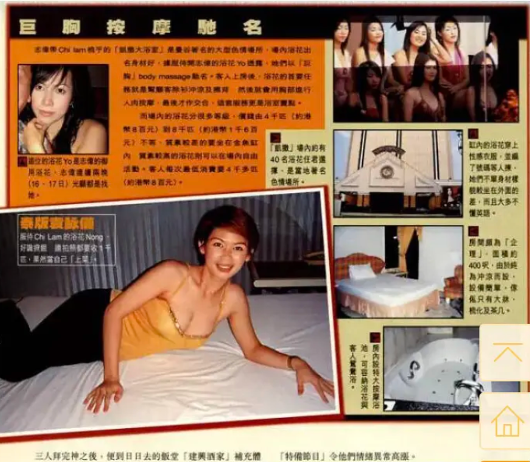 杂志报道,两日后记者假扮嫖客,掷重金访问为张智霖服务的“浴花”。