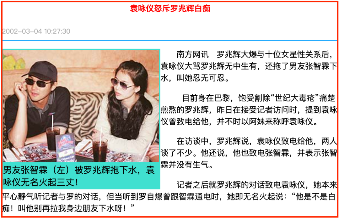 罗兆辉还爆料,说自己以五十万一个月,“包”港姐冠军y小姐两个月,一度承认“y小姐”就是袁咏仪,袁咏仪怒斥罗兆辉无中生有,大骂其是白痴!