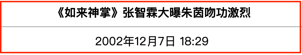 同年,张智霖与朱茵合作《如来神掌》,两人的亲密戏份尺度颇大,朱茵“以嘴含酒”传送到张智霖口中,为其“暖身”。