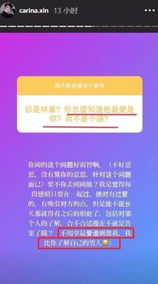 (不止一次回怼那些cue前任的林峯粉丝,明枪暗箭完全不在怕)