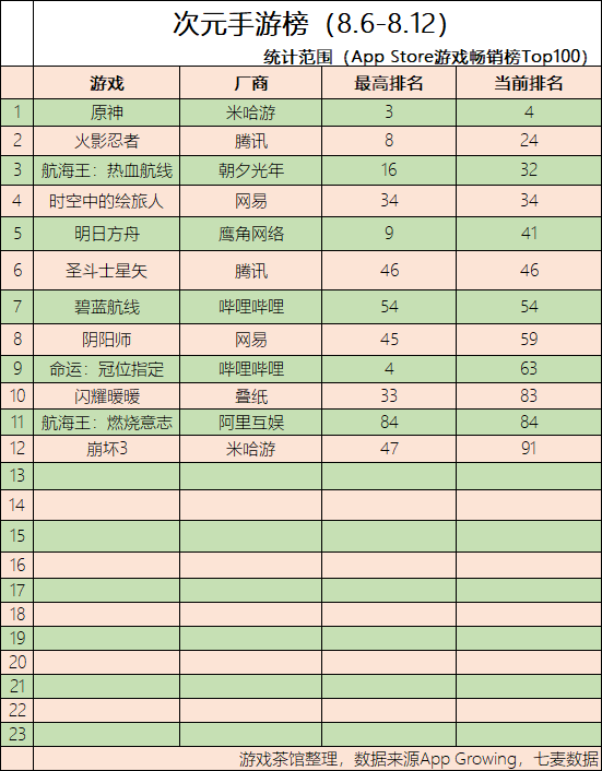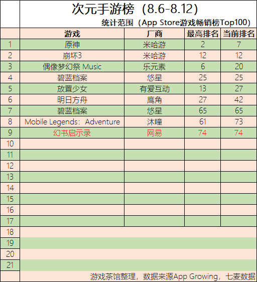 当然,7月份除了《原神》外的出海二次元游戏们同样也有着精彩的表现。