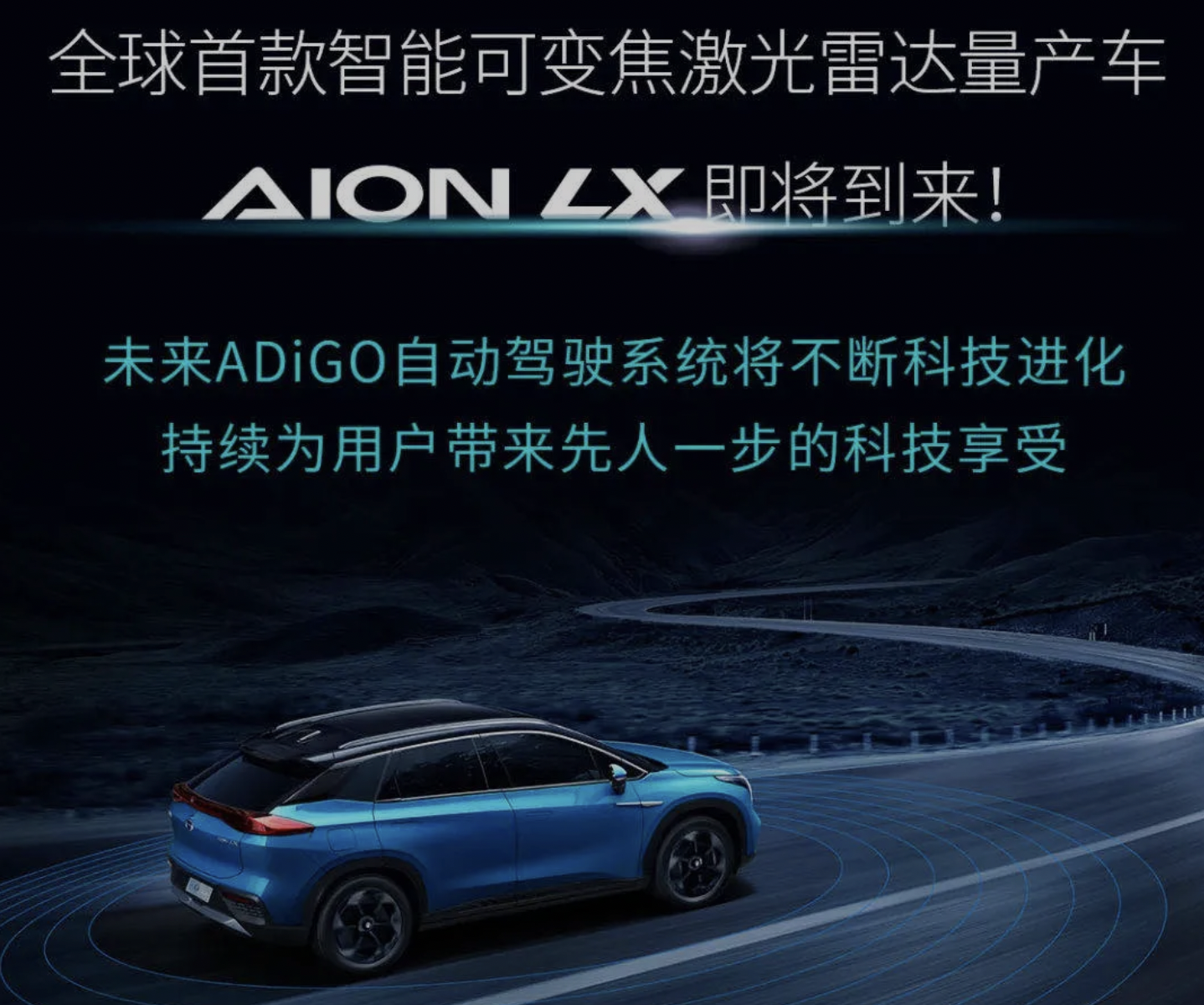 广汽埃安这周又放出了一个新消息,宣布全球首发应用第二代智能可变焦激光雷达,而aion lx将成为全球首款搭载这个激光雷达的量产车。