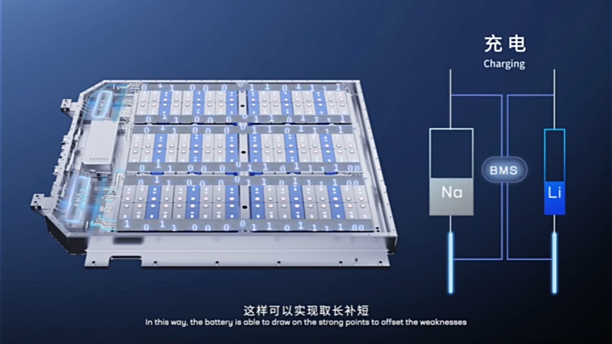 但最让人拍案叫绝的是,宁德时代开发了ab电池系统解决方案,也就是把钠离子电池与锂离子电池两种电池按一定比例进行混搭,集成到同一个电池系统里。这样既弥补了钠离子电池在现阶段的能量密度短板,也发挥出了它高功率、低温性能好的优势。