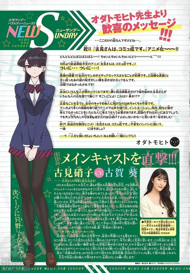 近日,动画「古见同学有交流障碍症。」公开了最新宣传图,并公开了主要角色的声优阵容。该动画将于10月份正式播出。