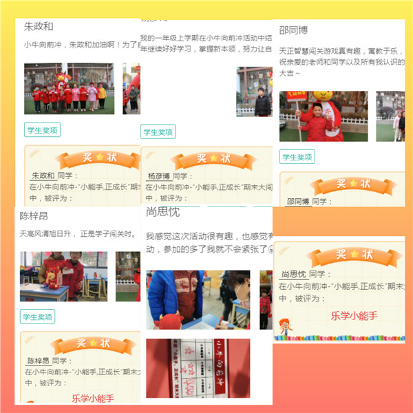 更加与众不同的是,本次活动在“小能手,正成长”天正小学适合发展的评价项目支持下,通过成长服务平台,支持家长与孩子实时上传成长照片、活动心得;活动结束后,支持老师在线颁发电子奖状,学生个性化的成长信息便被实时留存,待条件成熟时,计划在学期末学生的《小能手、正成长》电子成长手册中进行体现,为每位学生适合发展的成长助力!