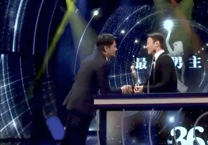 王祖贤也曾经在颁奖典礼上直勾勾地盯着他看,难掩小女生的迷恋神情。