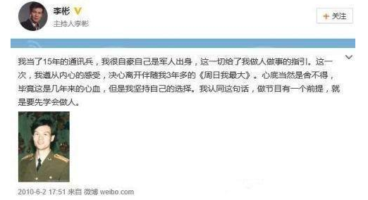 2010时,他曾发布一条微博称:做节目的提前,要先学会做人。有人说他得罪了导演,反正一时间议论纷纷。此后,李彬,留下了一个综艺的巅峰传说就转去做幕后了。