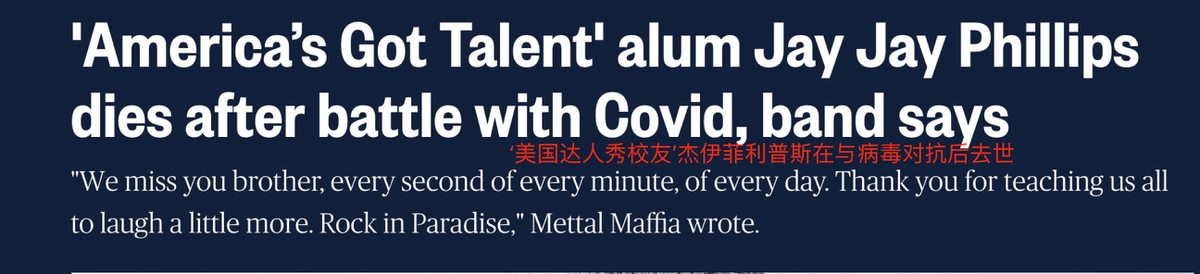 近日,据外媒报题,美国摇滚歌手杰伊菲利普斯(jay jay phillips)在确诊感染后在家休息,在感染前他并未做过任何措施,不久后病逝于家中,年仅30岁。