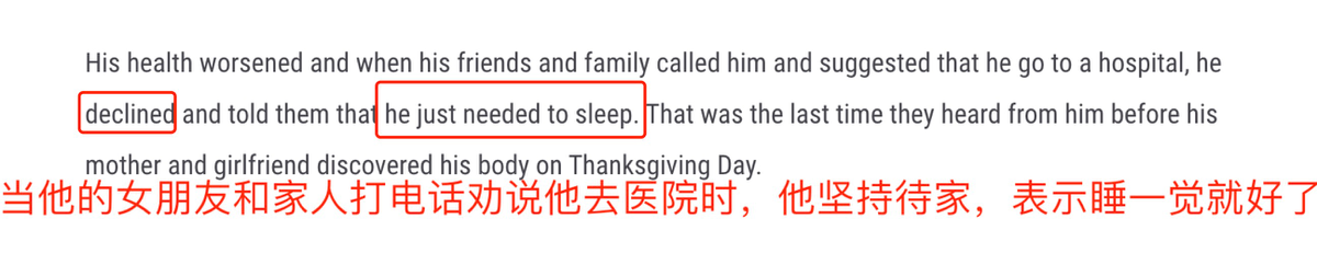 在媒体报道的信息中得知,杰伊菲利普斯是在感恩节期间感染的,在感染前一个晚上都还对自己的好友表示过自己要去医院做些准备。但是当他被确诊后选择了居家隔离,当他的病情开始恶化的时候却不听好友劝告去医院,而是坚持在家治疗。