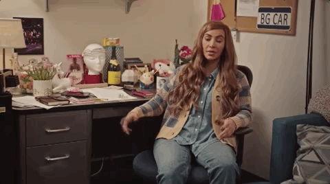 在《the switch调换人生》里,金姐和对手演员aidy bryant互换身份,她穿起了松垮的针织衫,梳起土土的头发,而aidy穿上了金姐的各种标志性造型。