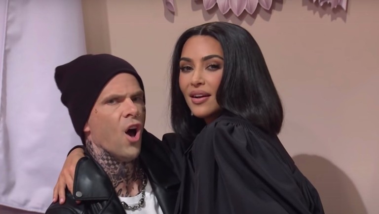 造型腔调拿捏好,金姐直接和模仿大姐男友travis barker的演员在庭上搂搂抱抱,左一句baby右一句honey,腻歪到旁若无人。