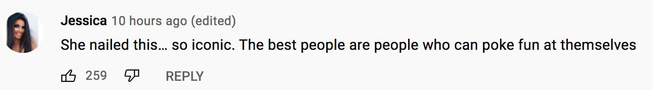 “她做的太好了…经典!那些可以调侃自己的人是最棒的人。”