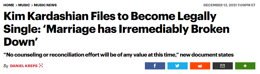 “双方的婚姻已经不可挽回地破裂了,原告(金)不再希望与被告(侃爷)保持结婚状态。”