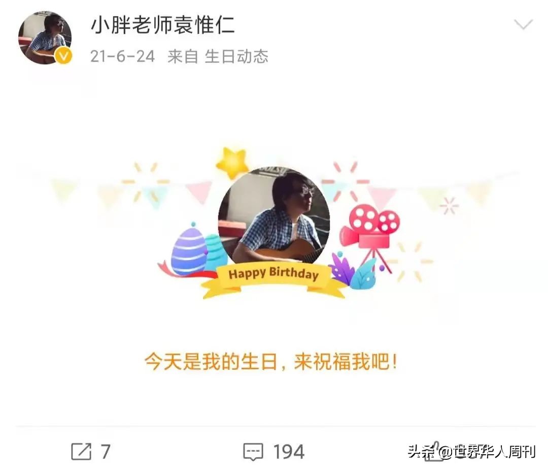 袁惟仁的微博从2019年开始,便再也没有更新过,只有每年6月24日生日这天,系统会自动发布生日动态,邀请好友祝他生日快乐。