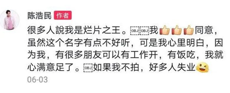 当然,来内地拍戏不等于拍烂片,但在陈浩民这里,基本上就是这样。
