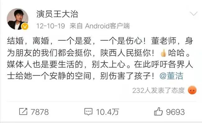 先是网上传出了两人离婚的消息,之后董洁方承认了这件事。