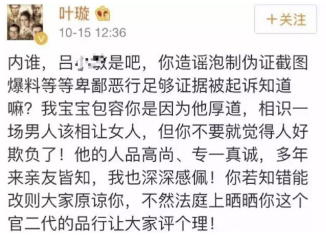 但作为现任的叶璇,可比小默先生本人激动多了,她先是直接在社交平台diss那个女生。